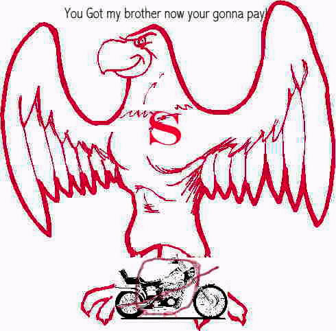 When the two scavengers saw the line of us coming down the road, they left their meal and flew out over the field. Then one circled back. It headed straight for us, colliding with the leader sitting in front of me first. Then the buzzard lost its balance and slammed into my forehead, which, thankfully, was protected by a good helmet. My head whipped back as the sissy bar stopped my fall. In the words of the rider behind me, the bird then started rotating and flipped “beak over butt, beak over butt, beak into the ground-dead.” It was all he could do, he said later, to avoid the whirling buzzard and control his laughter so he could stay upright.