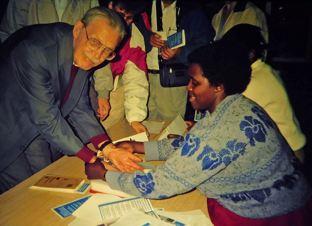 The unrest leading up to the first fully democratic election in April 1994 made it necessary for the multi-ethnic clergy group with whom I was traveling to pay extra attention to security issues. We were especially cognizant of this when we arrived at the Methodist Church in the center of Johannesburg and found policemen removing concertina wire near the front door where the ANC/Zulu clash that had made those headlines had taken place. We were there to attend voter registration training and a peace rally.