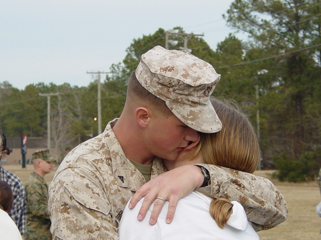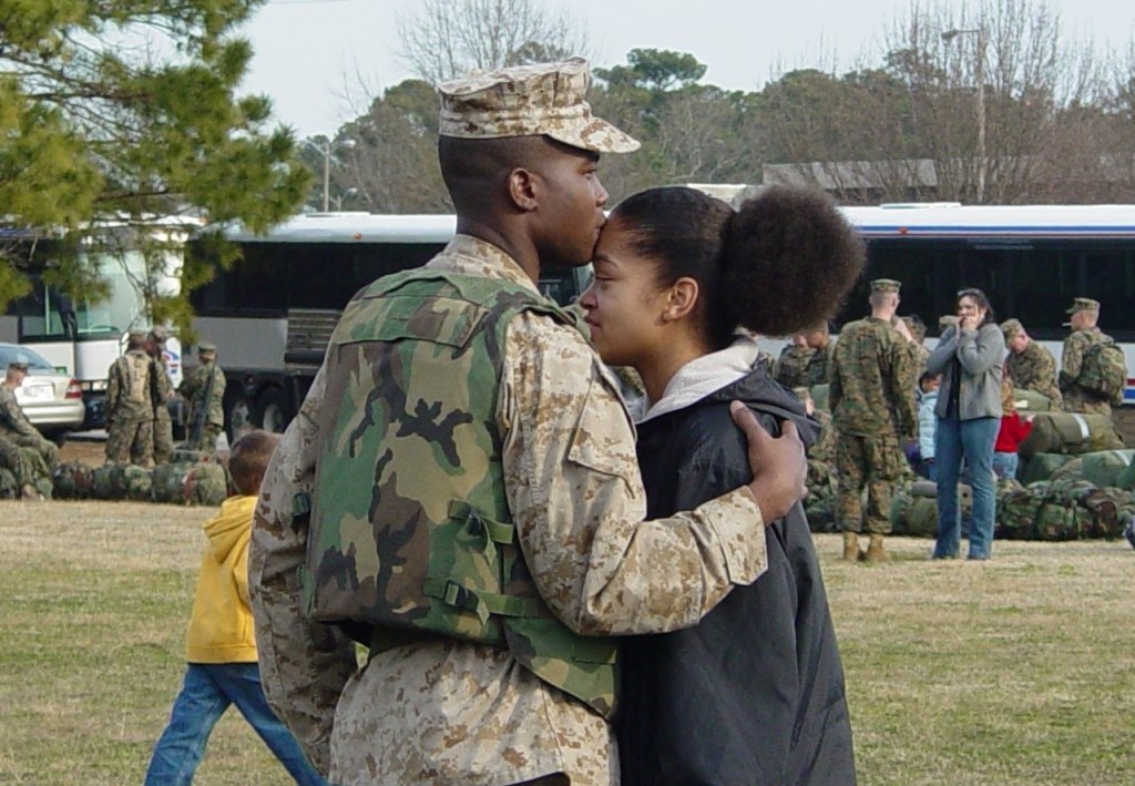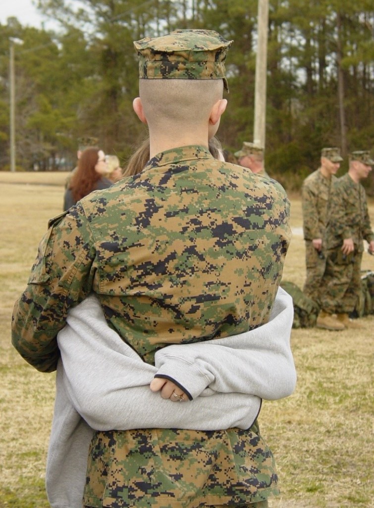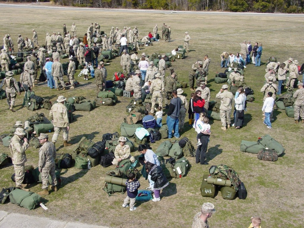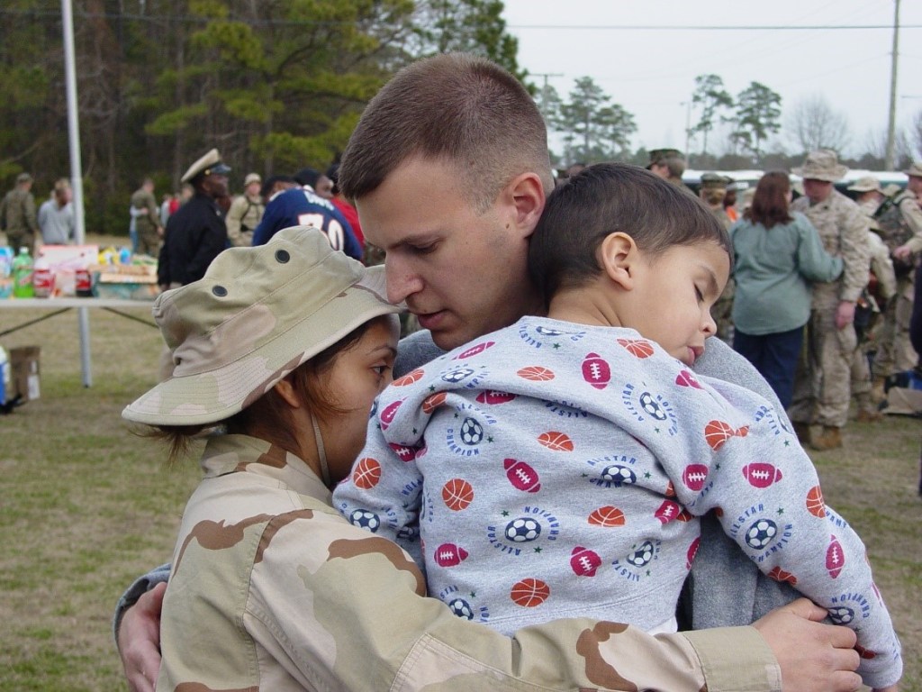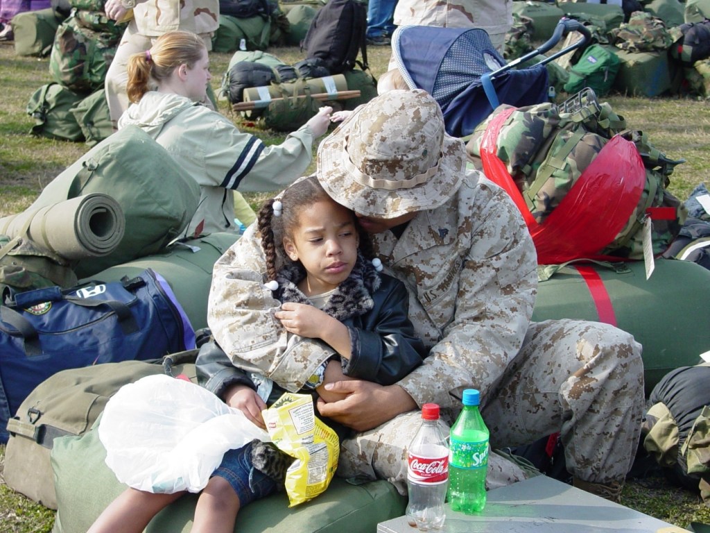 Before the sun rose, we were on the base. Soon, others from my unit arrived. Most formed tight circles of family and friends on the parade field. Near us, a young mother buried her tear-streaked face into the soft yellow blanket wrapped around her infant as she wept. Her young husband’s eyes were wet as he stared. He would soon care for their child alone. Across the way, siblings teased their deploying brother as proud but worried parents tried to look cheerful. Several couples stood locked in embraces, swaying as if to music. My assistant kissed his wife’s pregnant belly. He swept his toddler into his arms to hold him close.